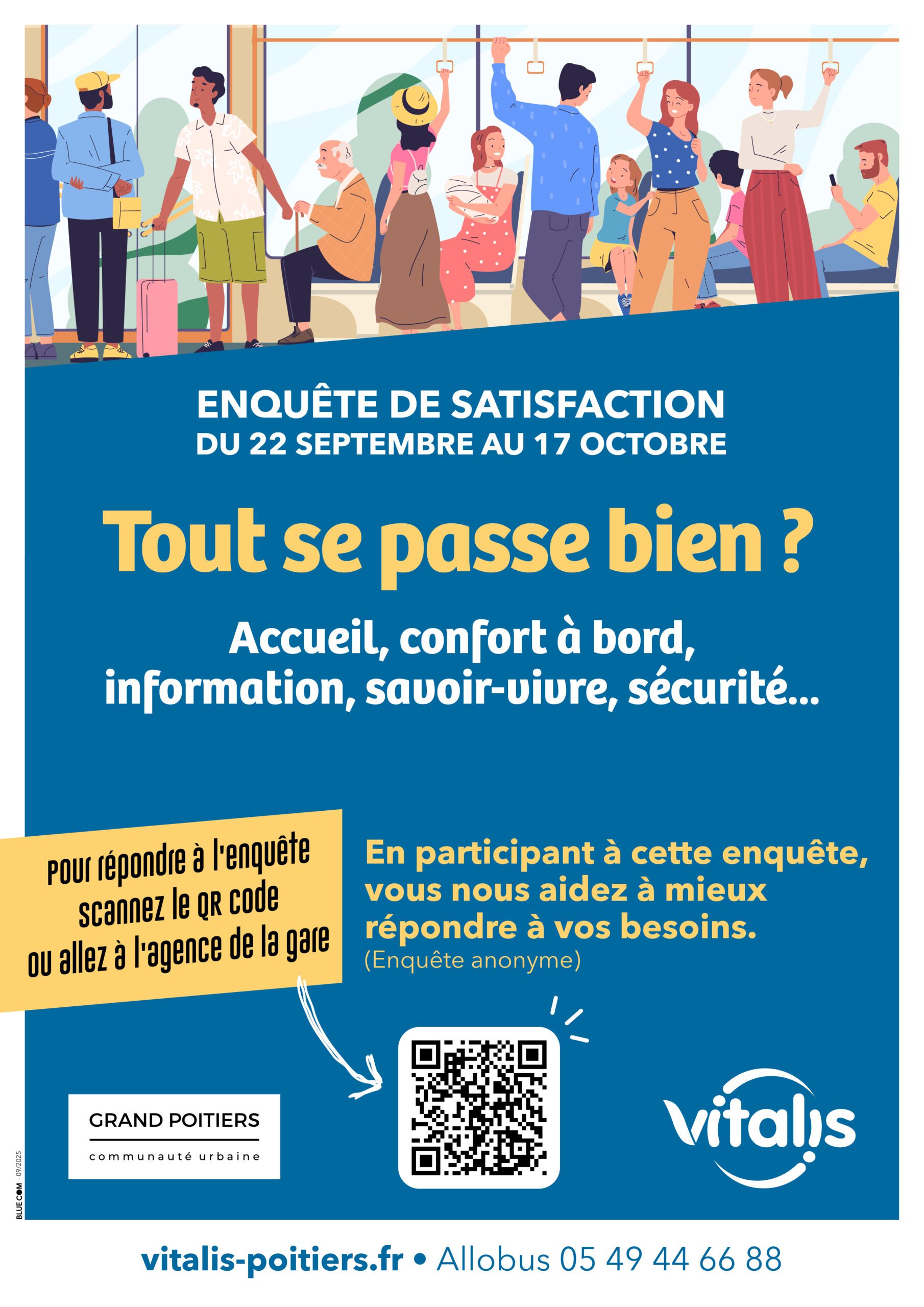 Du 22 septembre au 17 octobre 2025, Vitalis incite les voyageurs à répondre à une enquête de satisfaction. Celle-ci porte principalement sur le ressenti des usagers lors de leurs trajets et sera diffusé de manière périodique afin de suivre son évolution.